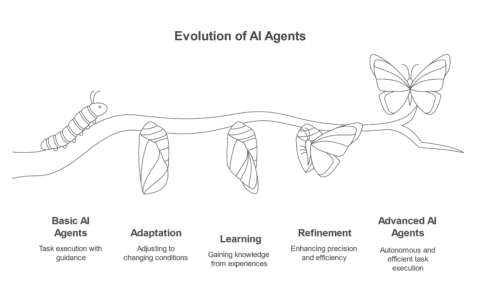 AI agents perform tasks, improve by themselves, and create sub-tasks through continuous training and learning. Through this iterative process, they ultimately reach the defined goal
