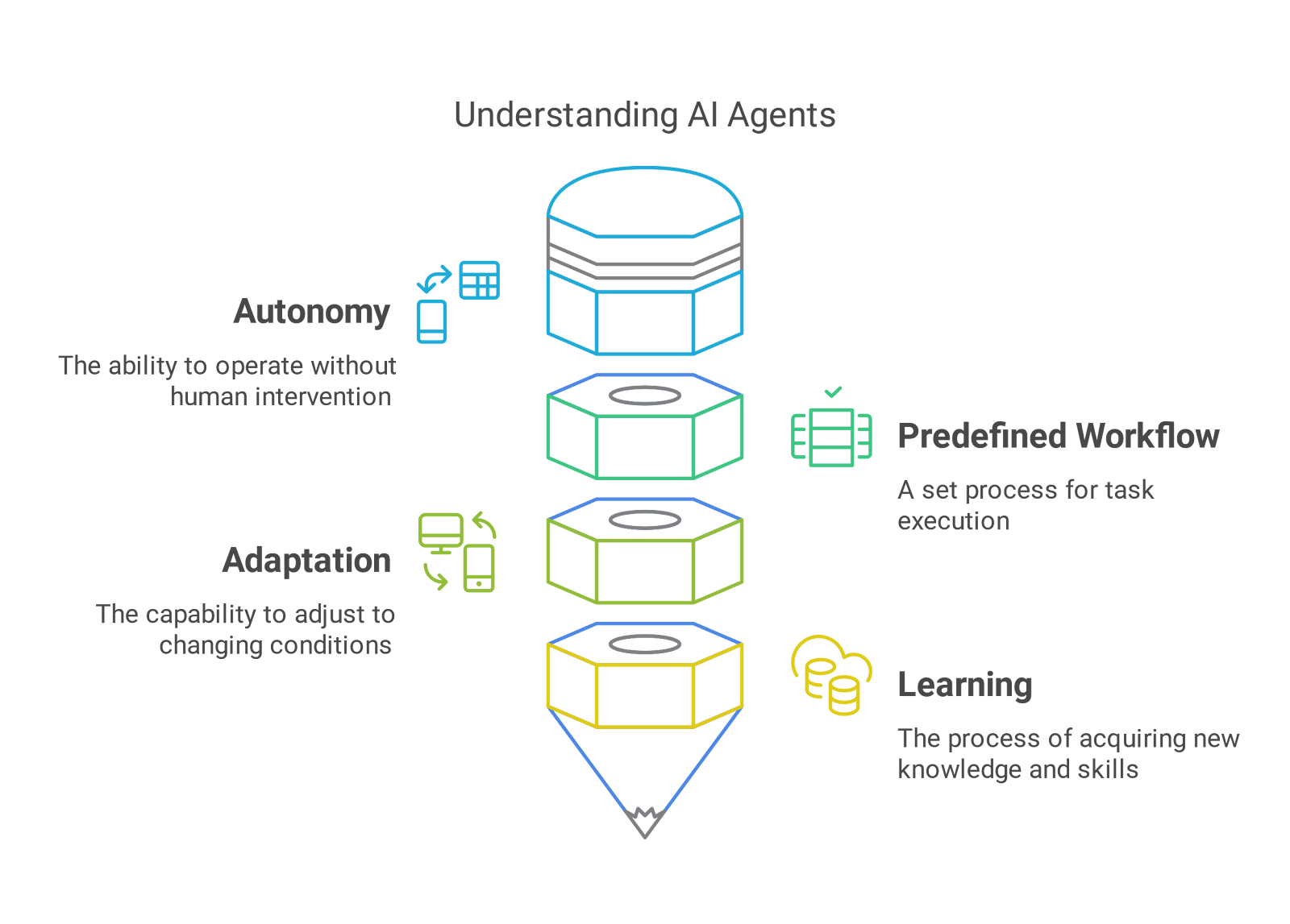 However, when environmental conditions or events change, the agent adapts by evolving and learning independently to achieve its objectives in the most efficient manner. Through continuous and rigorous learning, the AI agent becomes increasingly precise and refined over time.